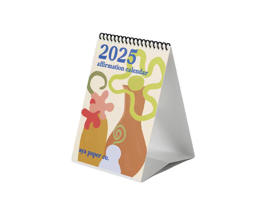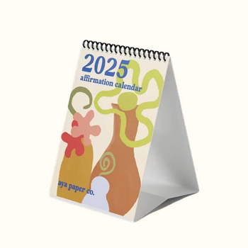 The 2025 Affirmation calendar is sized perfectly for the desktop or nightstand, with an easel to maintain an upright position. Every month includes a unique design and affirmation to help bring joy, intention, and inspiration to each day! Size: 6 x 9 in. Calendars are made with 100% PCW Recycled Paper, PCF Chlorine free, printed with non-toxic ink Design by SaVonne Anderson