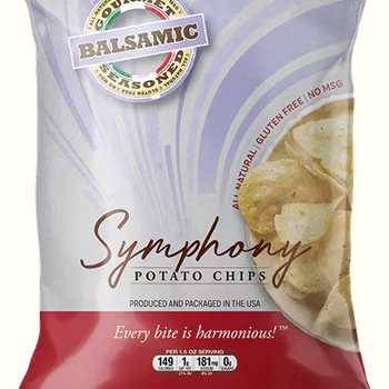 Our Balsamic-flavored Symphony Chips combine crisp, thin potato slices with our melodic arrangement of gourmet seasonings, giving these chips a unique flavor and taste we know you'll love. * Gluten-free * Made in the USA * Vegan-Friendly * All-Natural, No-MSG