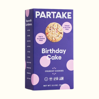 Created in 2016 by Founder and CEO Denise Woodard, when her daughter was diagnosed with multiple food allergies, Partake exists to offer a selection of delicious, allergy-friendly foods that those with and without food restrictions can enjoy and share with confidence. All offerings are certified gluten-free, non-GMO, vegan and are free of the top 9 allergens (wheat, tree nuts, peanuts, milk, eggs, soy, fish, sesame and shellfish).