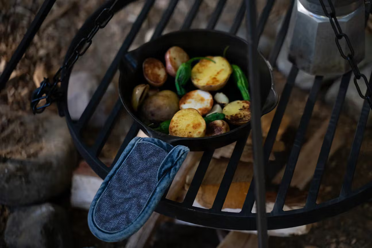 Carry your hot and heavy pans safely with our small but mighty Herringbone Quilted Panhandle Holders. - Made in the USA - Made with multiple layers of herringbone quilted insulation to protect your hands - Denim hanger loop for easy storage - Raw, unwashed denim wears in and softens over time - Raw dimensions: 6 1/4" Tall X 3 1/4" Wide X 2" Opening (may vary slightly) - Medium Vintage dimensions: 5 3/4" Tall X 3 1/4" Wide X 1.75" Opening (may vary slightly)