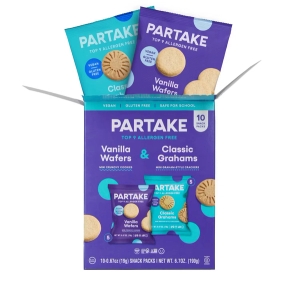 Created in 2016 by Founder and CEO Denise Woodard, when her daughter was diagnosed with multiple food allergies, Partake exists to offer a selection of delicious, allergy-friendly foods that those with and without food restrictions can enjoy and share with confidence. All offerings are certified gluten-free, non-GMO, vegan and are free of the top 9 allergens (wheat, tree nuts, peanuts, milk, eggs, soy, fish, sesame and shellfish).